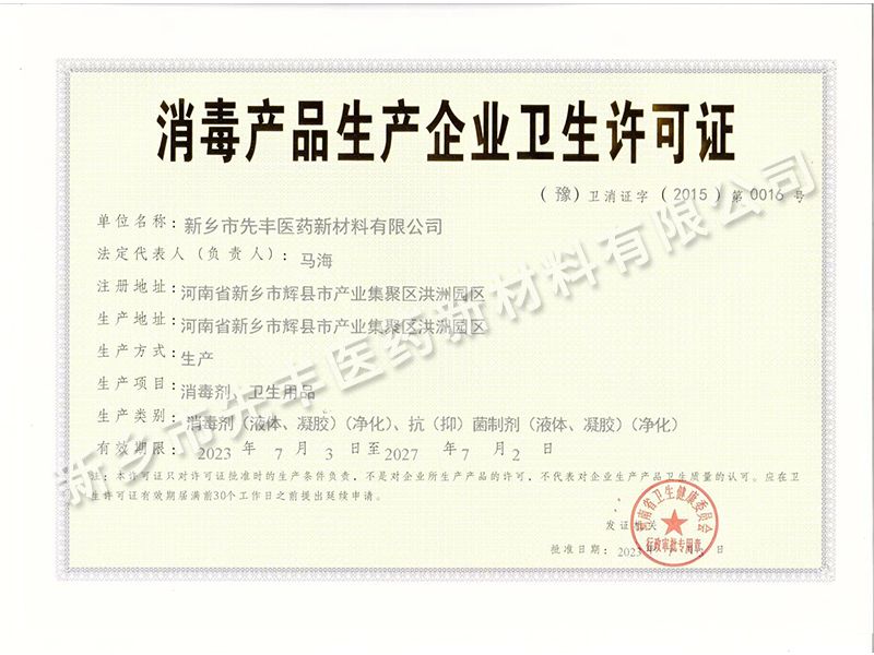 消毒產品生產企業(yè)衛(wèi)生許可證